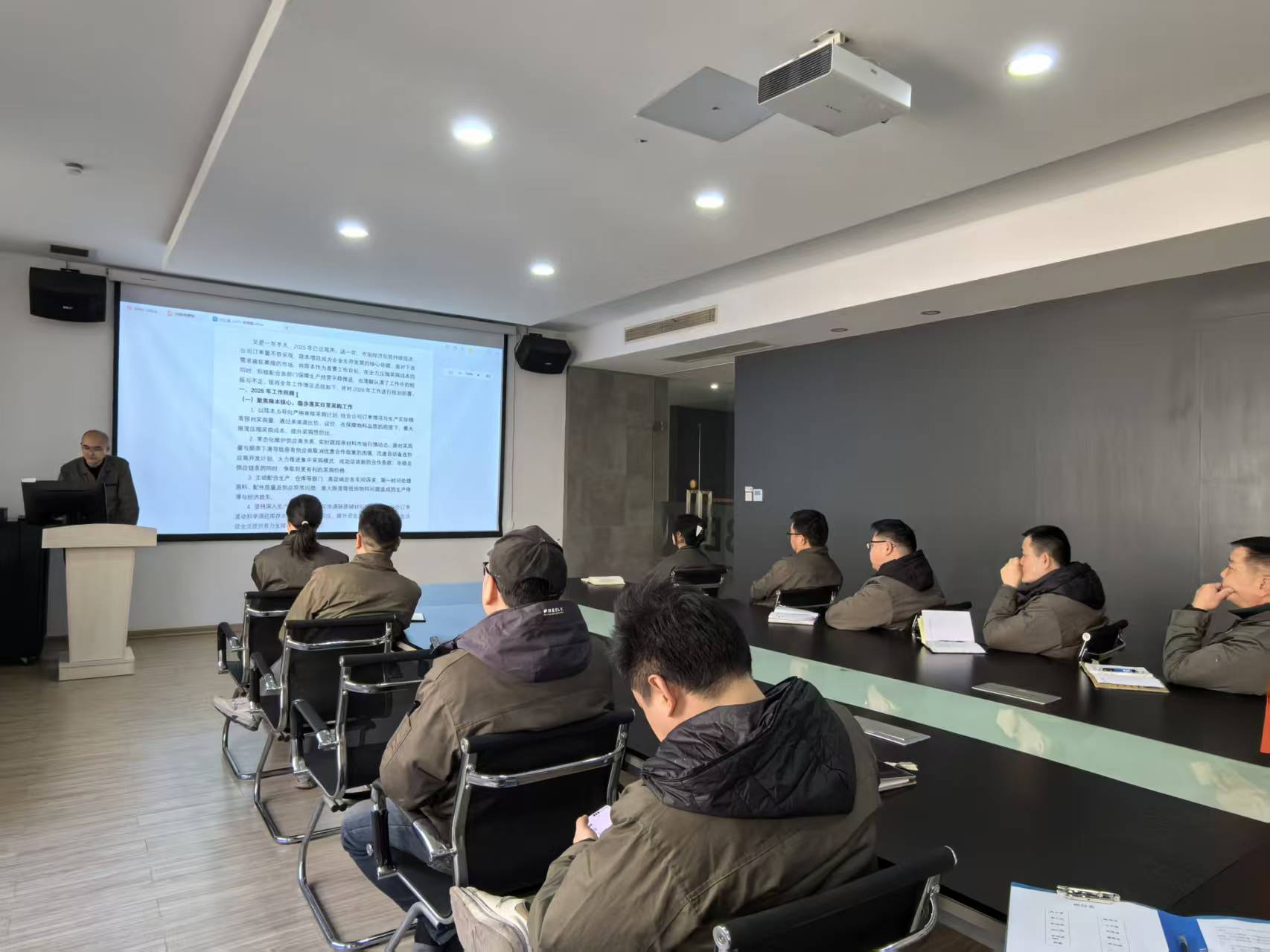 会议首先听取了各部门2025年度的工作总结汇报及2026年度工作规划,总经理杨总致辞2025年度工作总结报告并对2026年工作进行了部署。